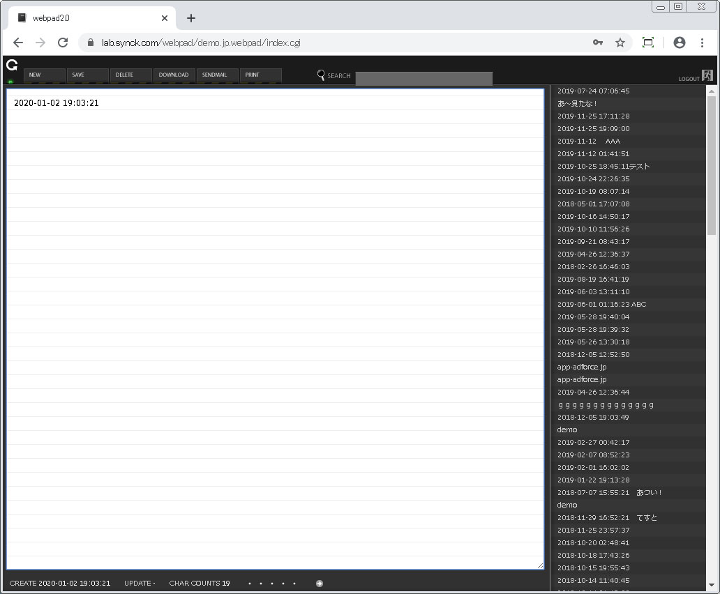 | 2009-07-28 | 2.0.1 | WEBPAD2.0.1公開。テキストファイルのダウンロード時の文字コードをUTF-8(BOMあり)に変更。 |