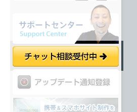 このようなバナーが表示されている際はチャットでの相談を受け付けております。このバナーはトグルになっており、こちらで無効にすると見えなくなります。受け付けている場合のみ(在席時)、表示されるという寸法ですね。