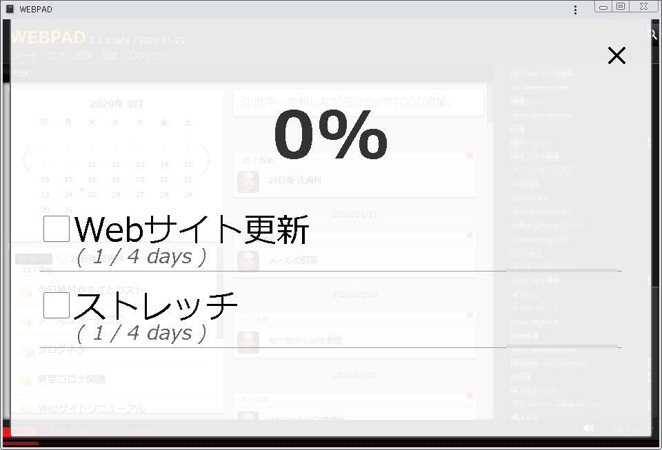 オンラインメモ帳WEBPADに日課を管理する機能を追加した3.3.1betaを公開しました。もちろんiPhoneやAndroidからも管理可能!
