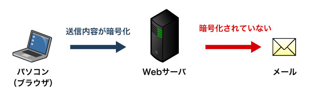ただ、ブラウザとWebサーバ間を暗号化するだけでも意味はあります。それは公衆無線LANなどのオープンなネットワークを介した場合のパケット傍受から送信内容を守ることができるためです。メールはWebサーバ上から発信されるため、Wi-Fiネットワークのパケット傍受の被害は受けません。