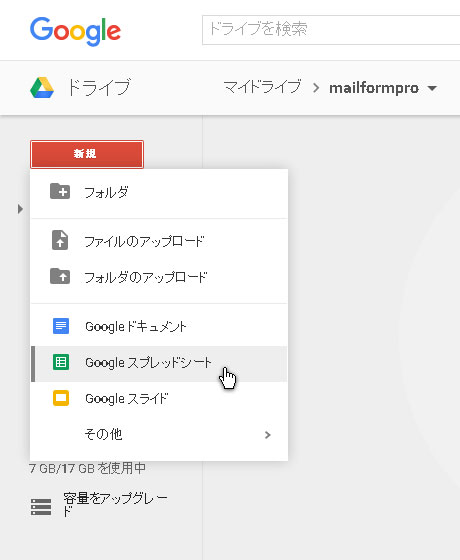 4.新規をクリックしてGoogleスプレッドシートを作成します。