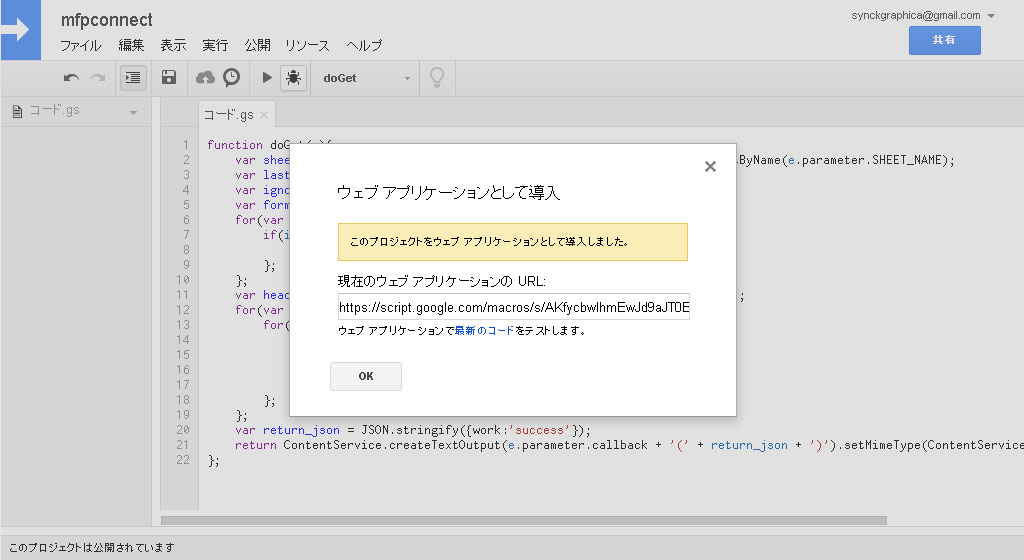10.表示される現在のウェブアプリケーションのURLをコピーしましょう。これで準備はあらかた完了です。