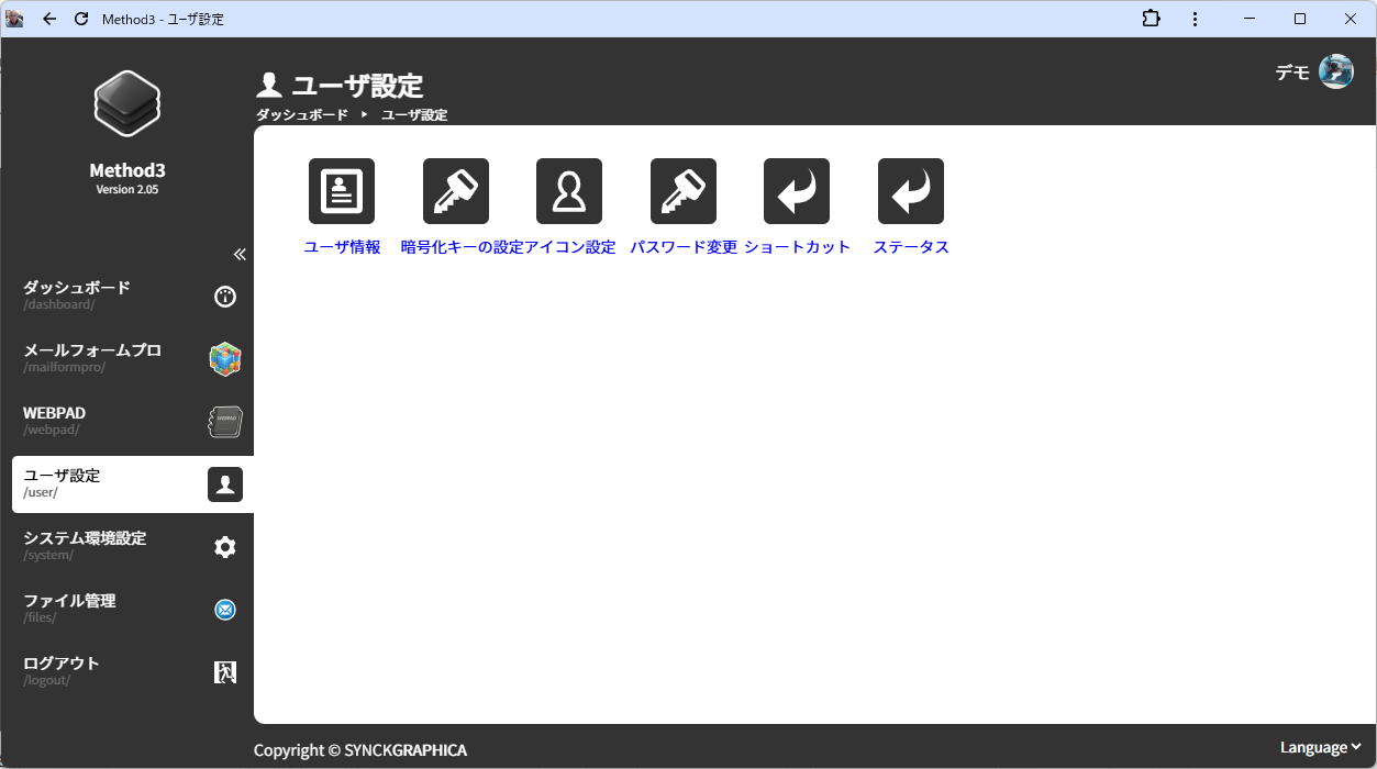 汎用管理システム『Method3』はWebサーバで動作する多目的な管理機能です。ユーザを作成し、ログインして何かしらを行うためのプラットフォーム的なもので、ユーザ毎にアクセス権を設定したり、システムを仮想化して複数の組織で使えたり、と多目的な用途での利用を想定したシステムです。